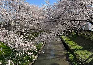 県内でも有数の桜の名所で、吹上地域の中央を流れる元荒川の両岸2.5km、500本に及ぶ桜並木は、春になると美しく咲き競い、華やかな姿を水面に映し出します。