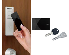 カザスプラスカードやケータイをかざすと、2つのカギが自動で解錠。簡単にオートロックモードにも変更できます。