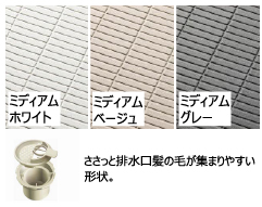 アクアマーブル⼈造大理石浴槽はっ水・はつ油成分を表面だけでなく素材に練り込んでいるので、汚れがつきにくく、キレイが長持ち。
