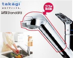 スゴピカ水栓水アカが付きにくい素材を使用。水アカが付きにくく、お掃除しやすい水栓です。