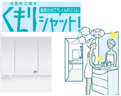 くもりシャット!ヒーターレスでもくもりにくく、電気代ゼロ。鏡全体に吸水コーティングのくもり止め加工を施しているから、全面くっきりクリア。