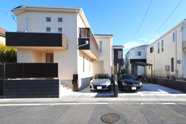 東南角地、駐車2台。多目的リビング【ネライフ】の家。