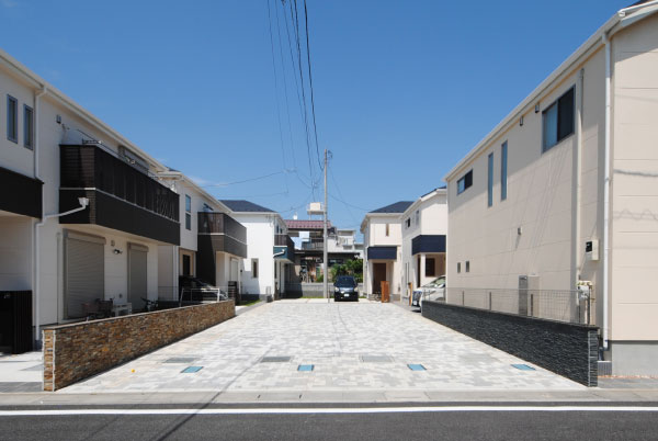 全9邸の華やかな街並み。インターロッキングの協定通路が資産価値をアップ。