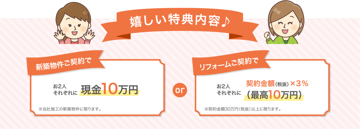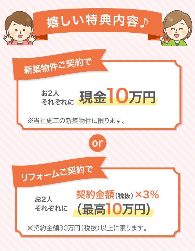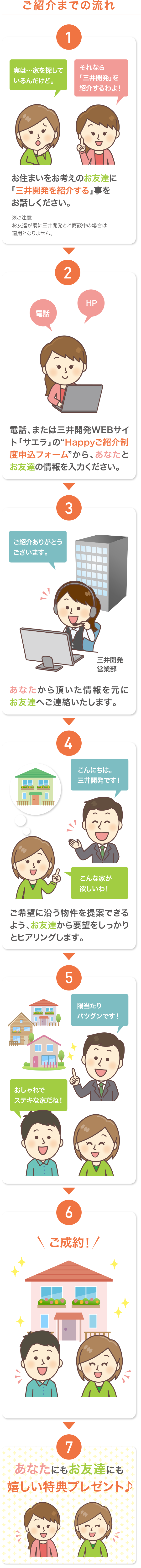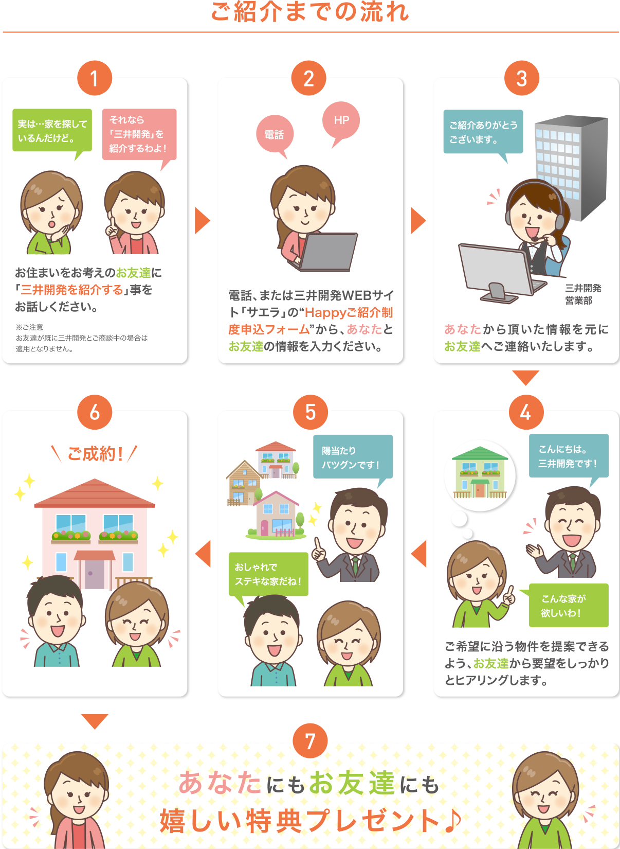 お住まいをご計画中・ご検討中のお友達をご紹介いただけると、ご紹介者様・そしてお友達に素敵な特典をプレゼントしています!あなたが気に入って購入してくださった、三井開発の家。是非お友達にも紹介していただけませんか?もちろん、購入前提のご紹介でなくても大丈夫です!また、ご購入に至らなかった場合でもご紹介者様にはお礼として2000円分のクオカードを差し上げます!良きご縁をお待ちしております。