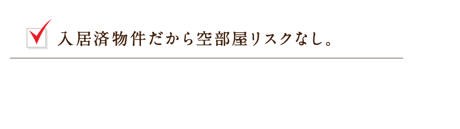 投資いただくアパートのお部屋については、入居済の状態でご購入いただきます。