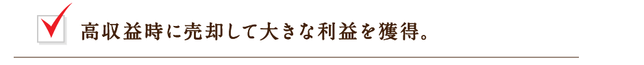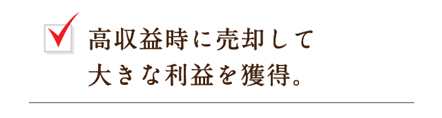 三井開発では、物件が高い収益をあげている時期にローンを完済し、大きな売却益を得るプランをおすすめしています。