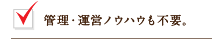 入居者の募集、物件の日常清掃、設備トラブルの対応、入居者の出入金の管理。さらに、家賃保証システムや瑕疵保証、不測の事態への対応など、投資物件のスムーズな運用と資産価値の保持には、信頼できる管理会社が必要です。
