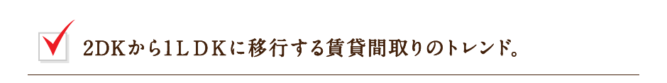 現在のアパートでは、一般的な賃貸間取りとして人気のあった2DK、3DKから、キッチンを一体化した大きなリビングダイニングのある1LDK、2LDKへと賃貸需要が変化しています。
