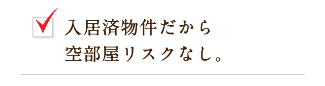 投資いただくアパートのお部屋については、入居済の状態でご購入いただきます。