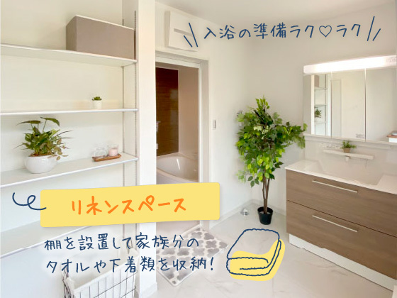 毎日使うタオルや下着・パジャマ類を家族全員分収納できます。入浴の準備も楽々!