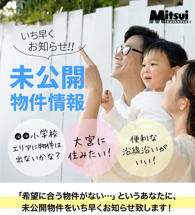 住宅は人生で一番大きなお買い物。皆様色々とご希望がおありのことと思います。三井開発では様々な物件をご用意しておりますが、現在HPに記載されている物件の中に希望に合う物件がない!というお客様。下記フォームにあなたのご希望をご記入ください。三井開発が情報を持つ未公開物件や、実際にご希望に近い物件が誕生する際には優先的にメールでご連絡させていただきます。どんな意見でもかまいません。どうぞお気軽に、ご希望の物件をお寄せください!