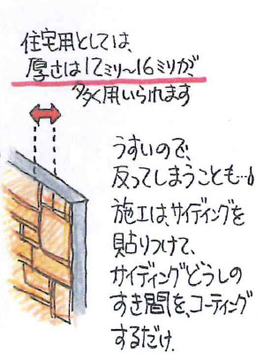 とてもポピュラーな外壁材で住宅の外壁材としてよく利用されています。デザインのバリエーションも広く、施工も簡単です。