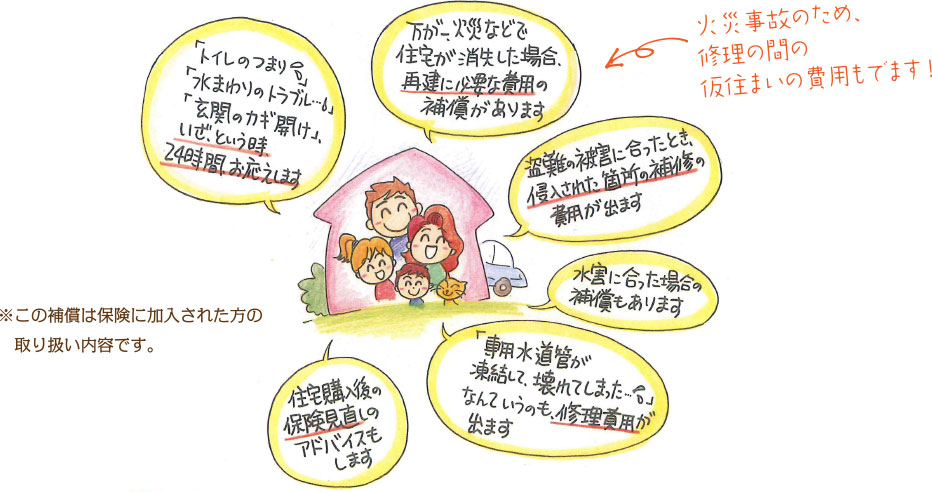火災保険をはじめ、家財保険、地震保険、盗難保険など、