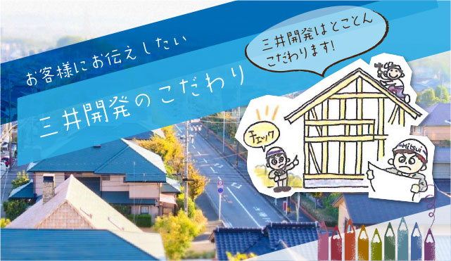 三井開発は住む方の身になって、家づくりに努めています。住宅づくりにこだわりと責任を持ち、「自分が住んだとしたら…」「自分たちがほしいと思う家は…」という気持ちを大切にしています。