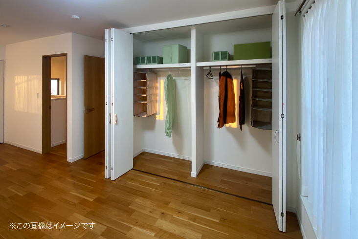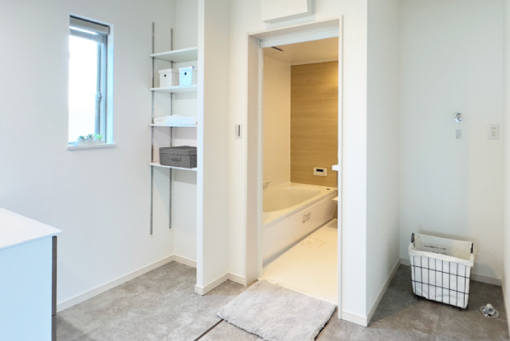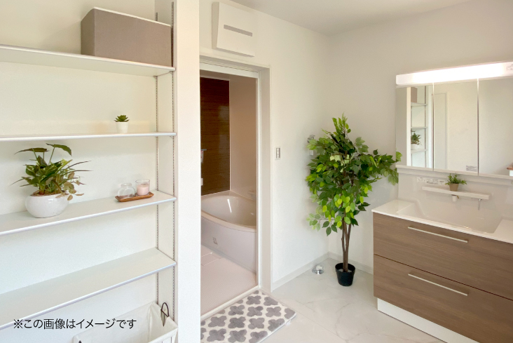 洗面&浴室を2階に設置する事で洗濯動線が短縮され洗濯がラクに。プライベートスペースがすべて2階なので来客時の気遣いが軽減し掃除もラクに。動線の良さから家族も自然と家事に参加する新発想の間取りです。