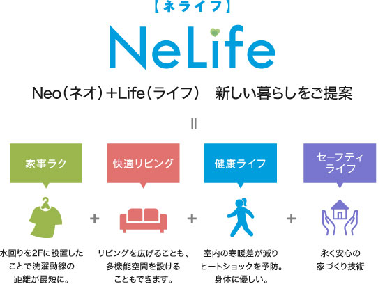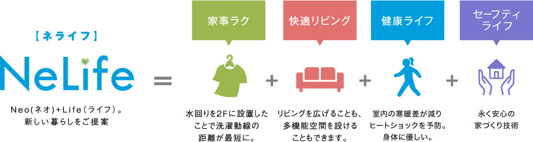 これまでの一般的な住宅プランではなかなか対応しきれなかった家事ラクニーズに対応した新ブランドが、「NeLife」(ネライフ)」です。家の間取りを思い切って変えることで