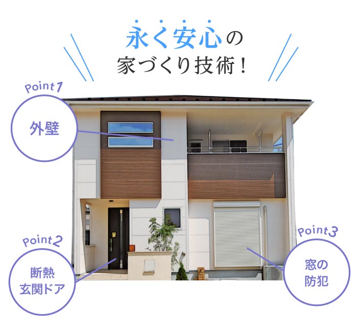防火性、断熱性、耐久性、防災性、遮音性を持ち、大地のような安心感で快適な生活をお約束します。 -