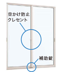 障子が完全に閉まっていないとクレセントがかからないため、施錠状態が一目で確認できます。施錠後にクレセントを固定できるロック機構がついています。