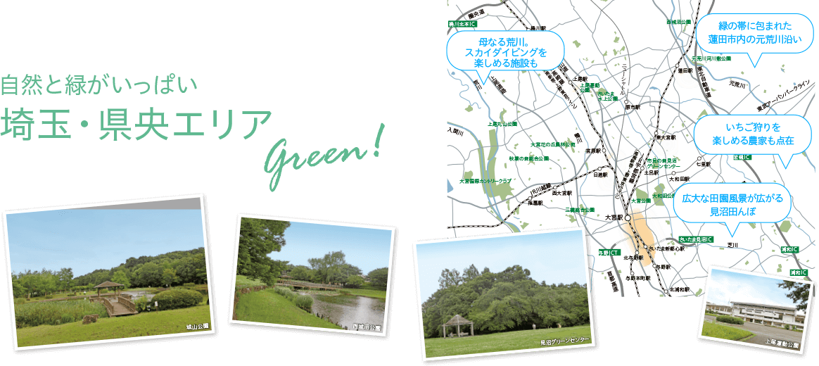自然と緑がいっぱい埼玉・県央エリア自然と緑がいっぱい埼玉・県央エリア