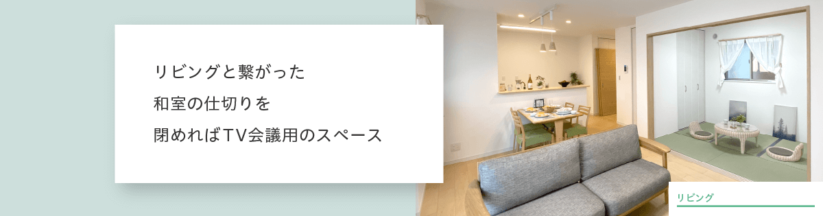 リビングと繋がった和室の仕切りを閉めればTV会議用のスペースリビングと繋がった和室の仕切りを閉めればTV会議用のスペース