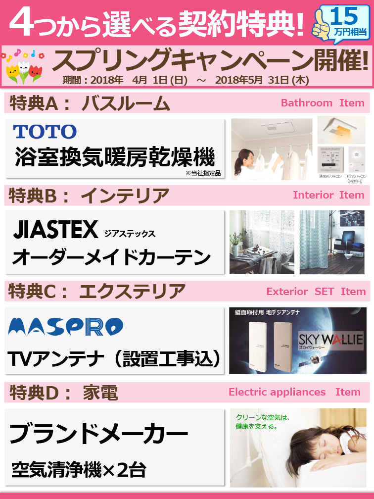 4つから選べる契約特典!スプリングキャンペーン、4/1スタート!
